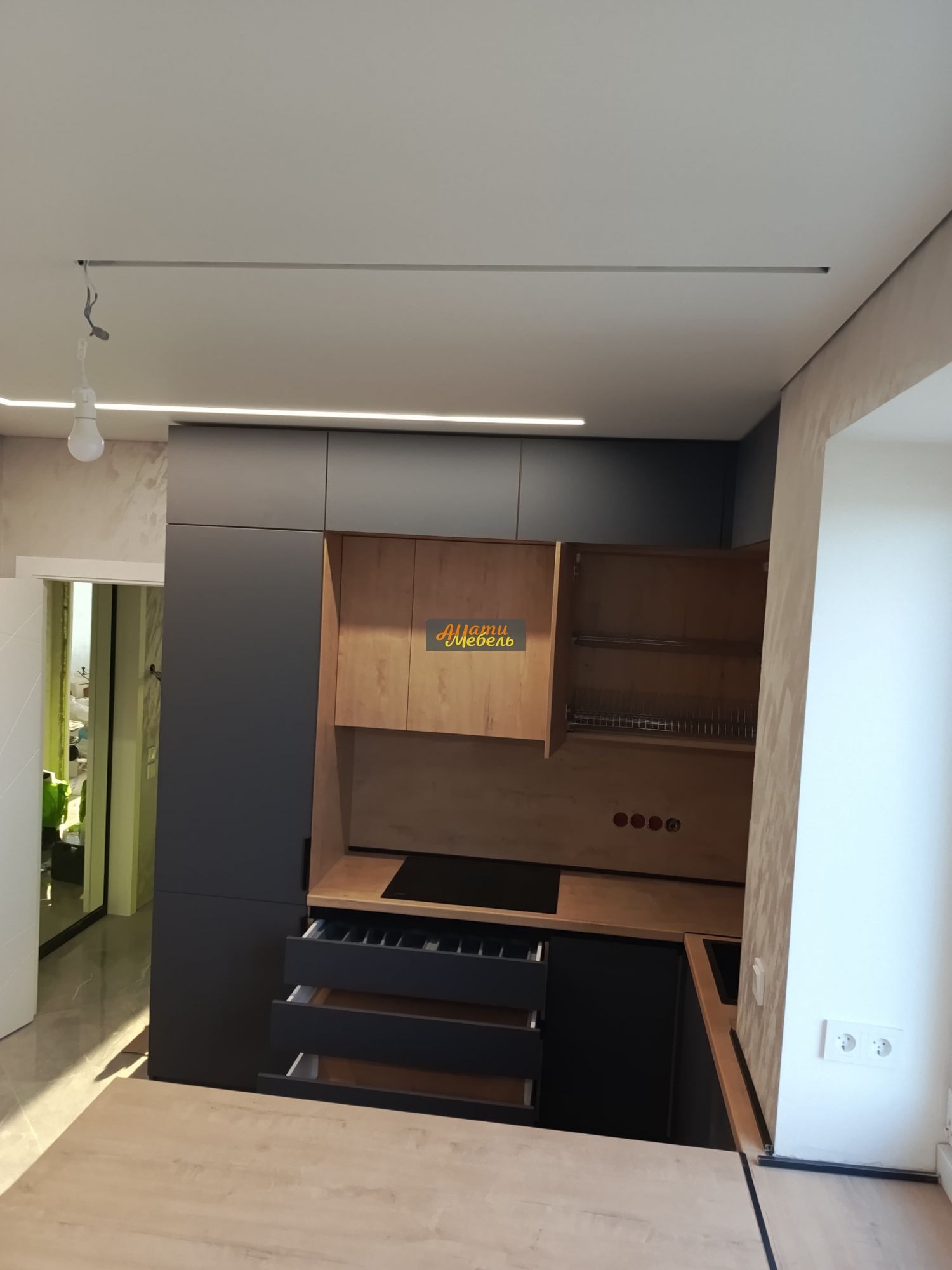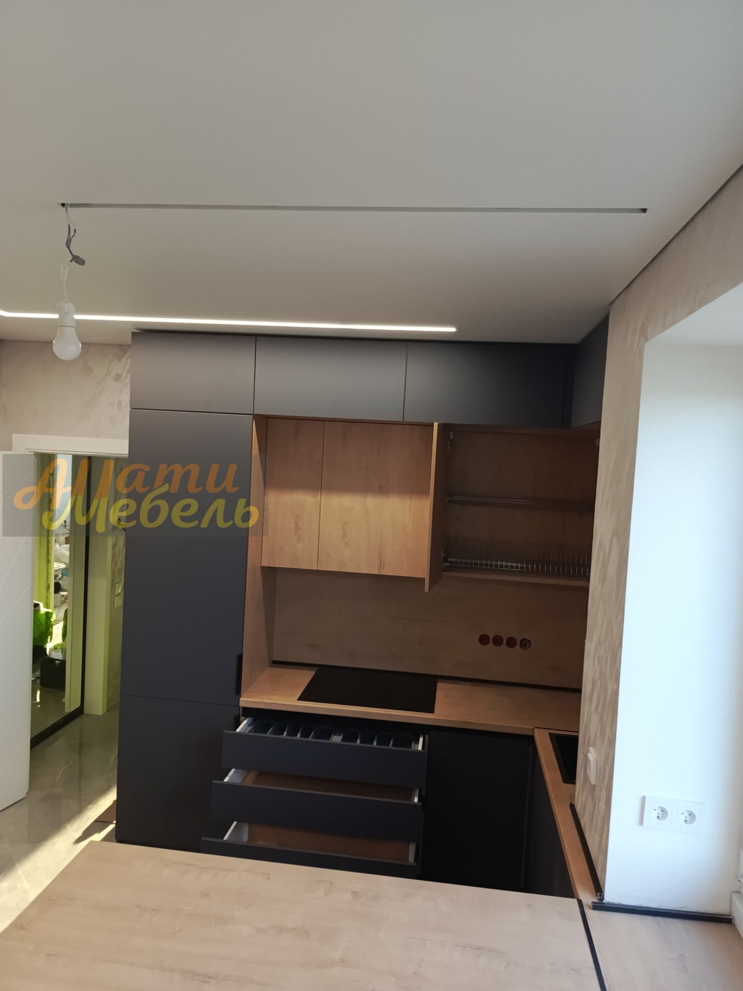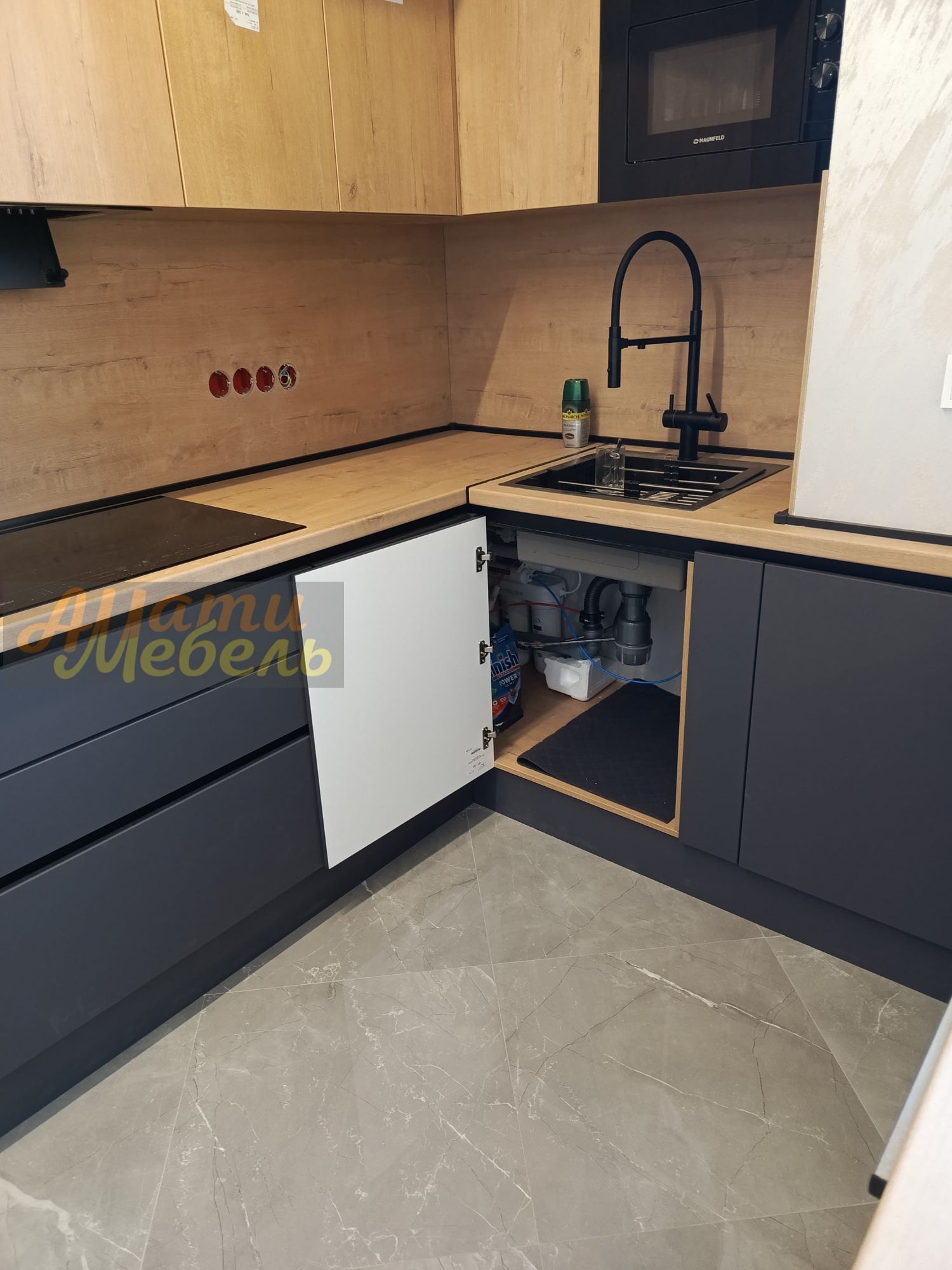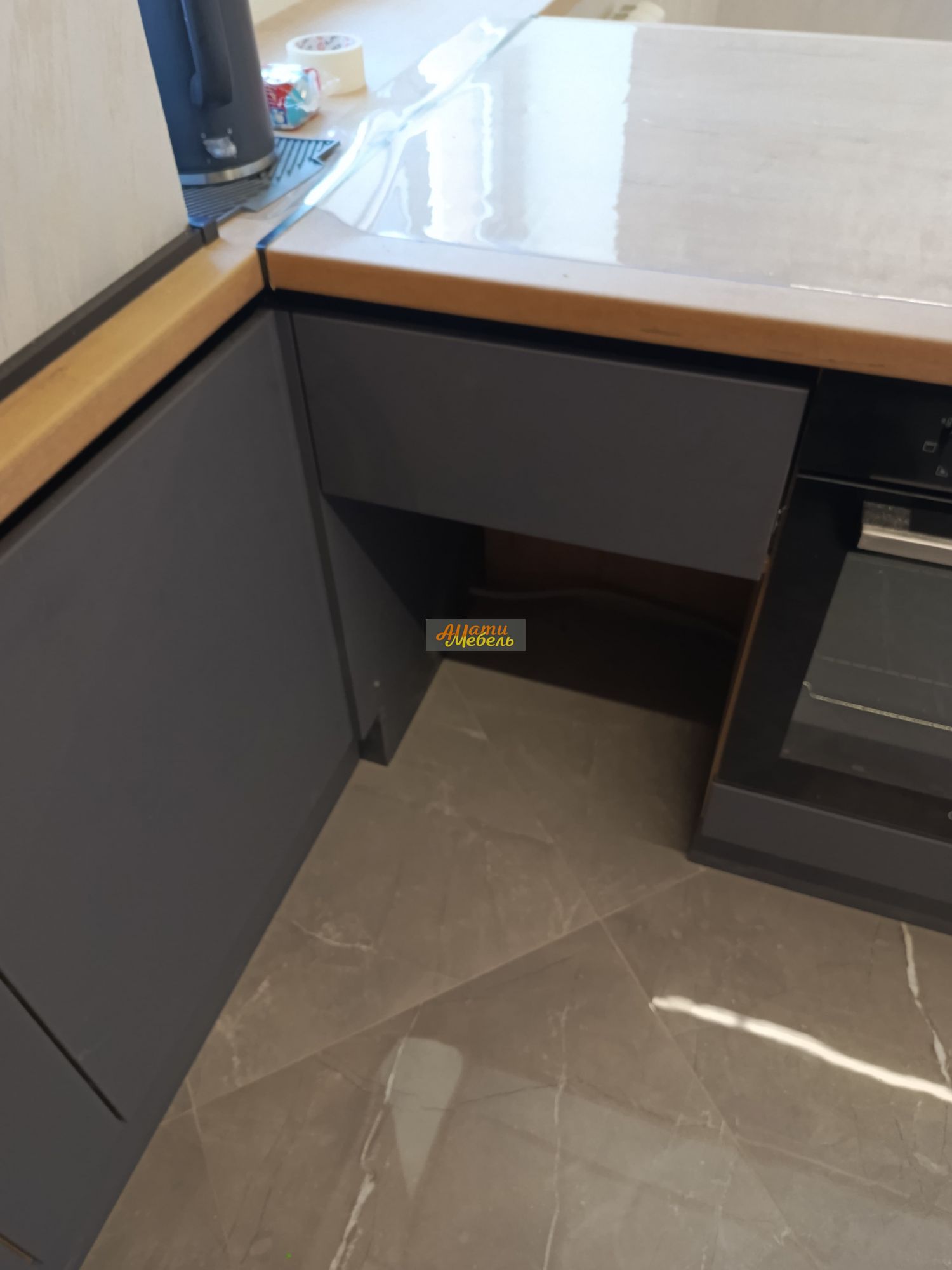 кухонный гарнитур с нишей для автоматической моющей станции(робота-пылесоса)