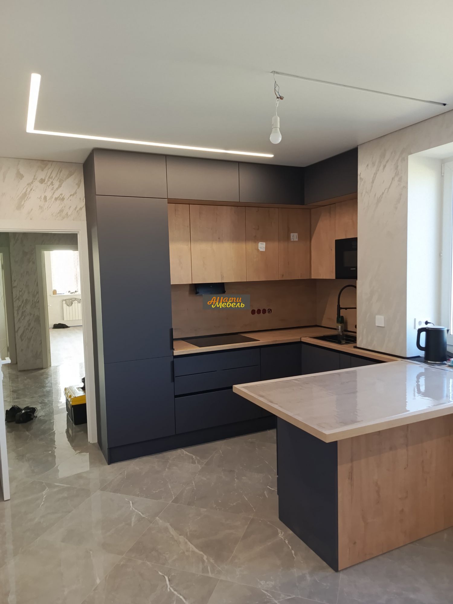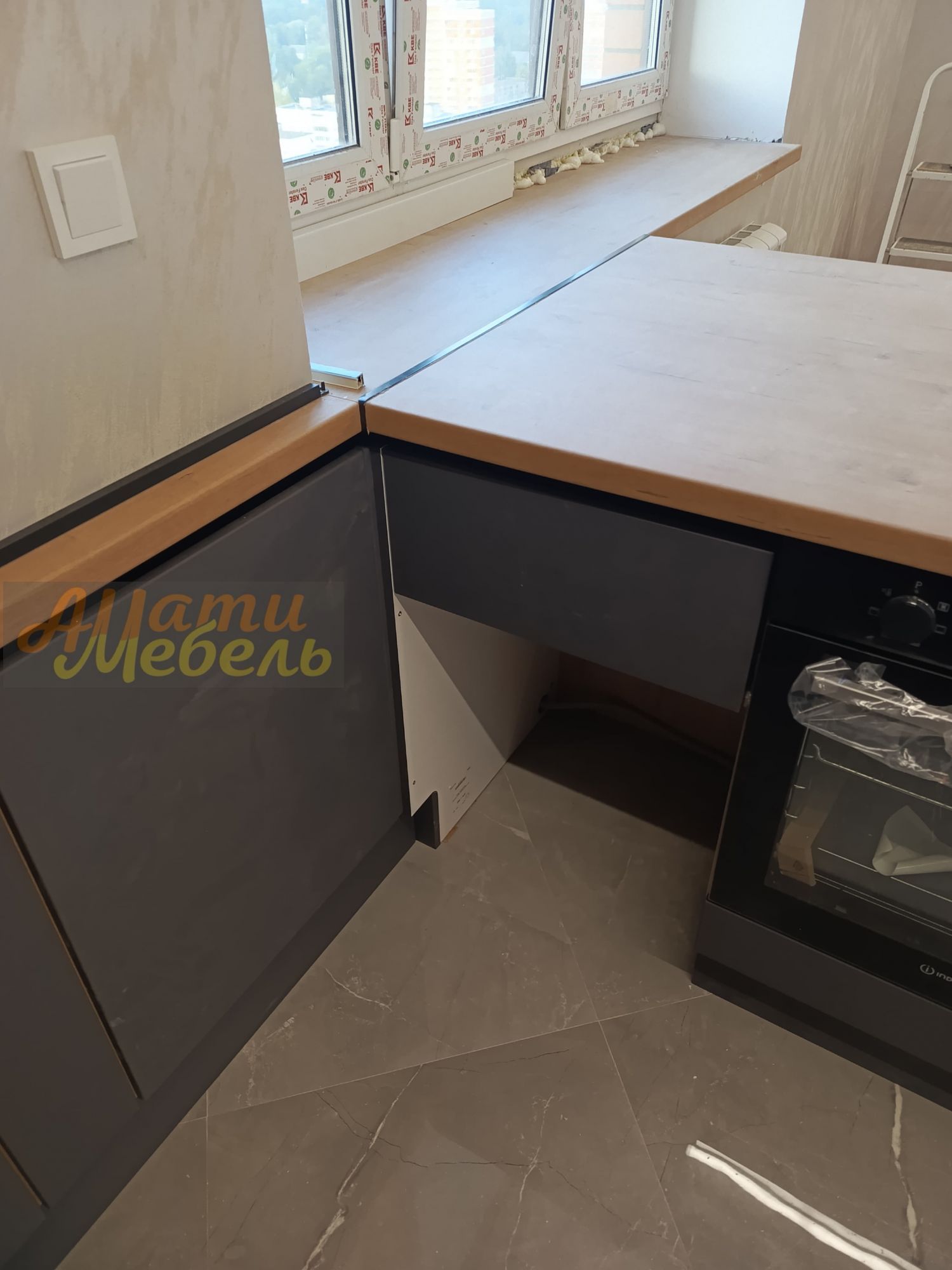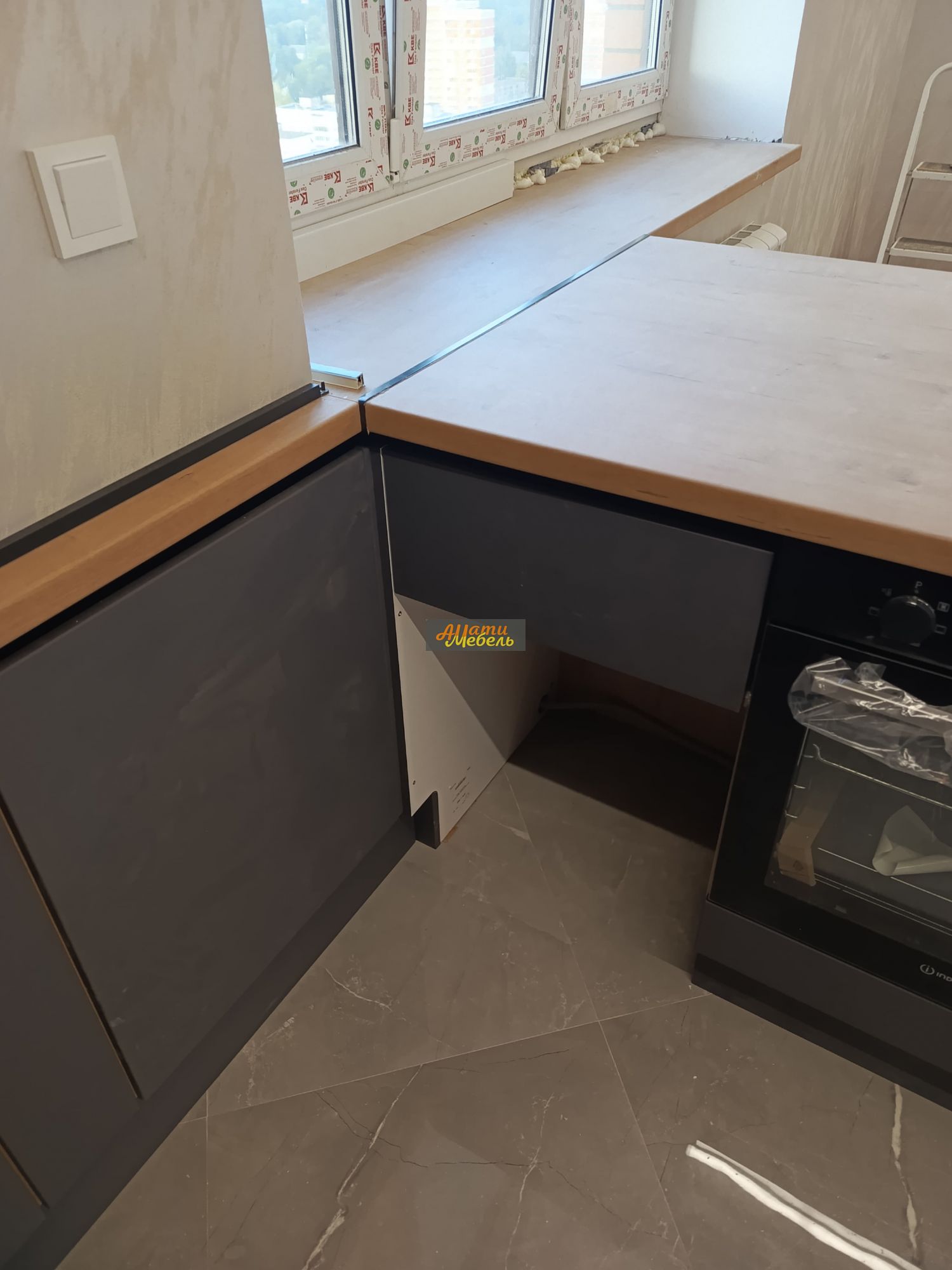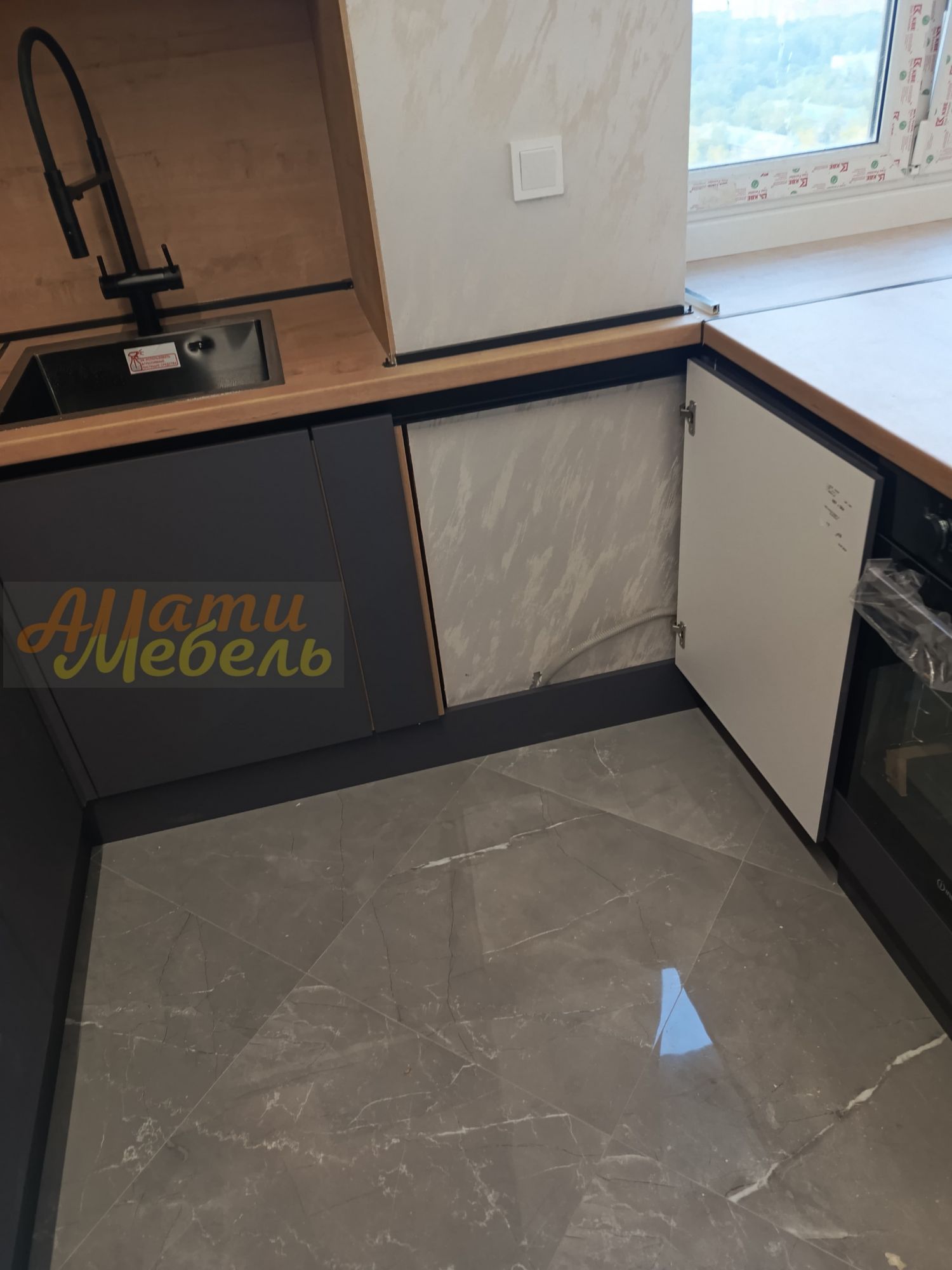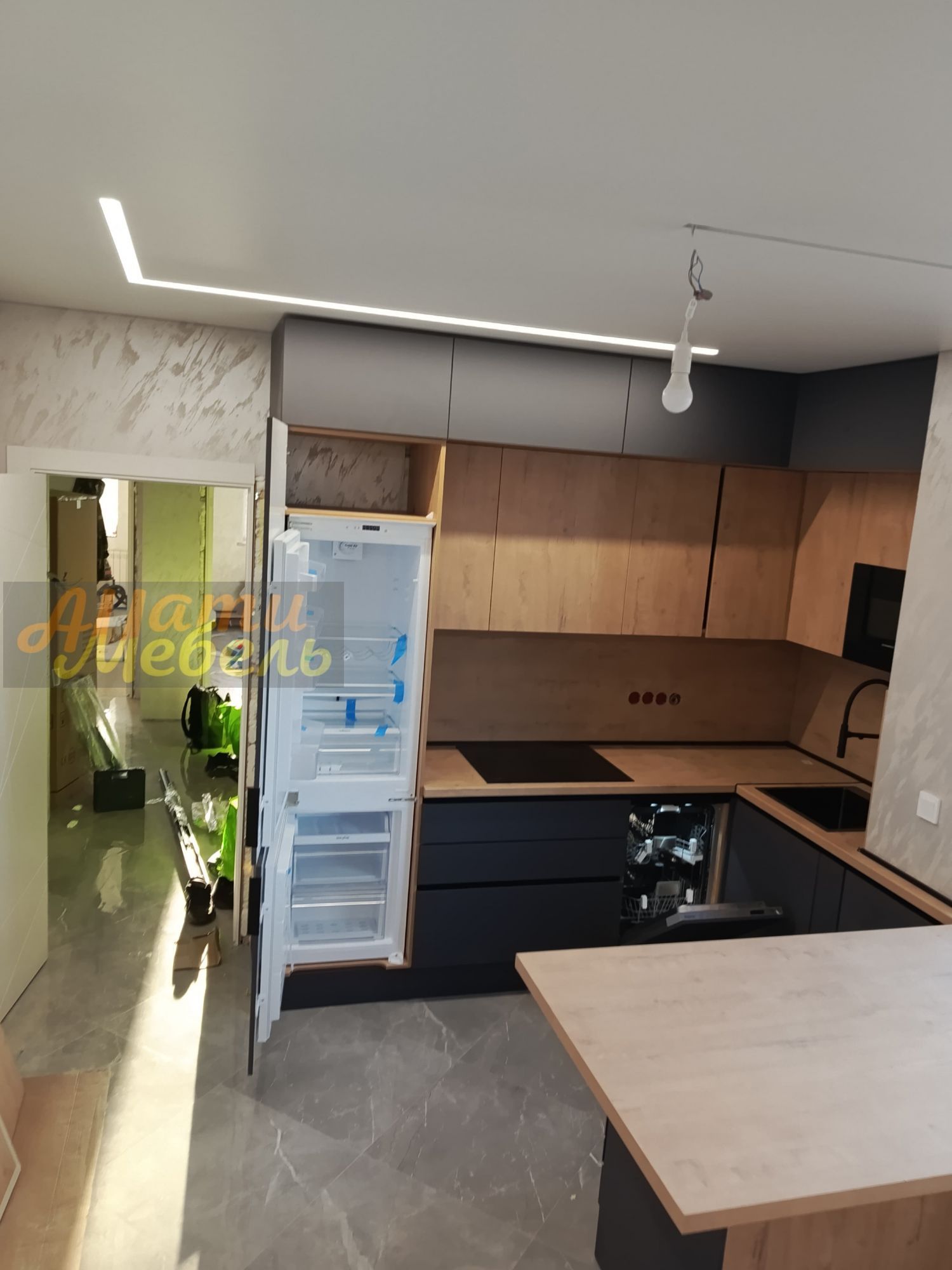 кухонный гарнитур с нишей для автоматической моющей станции(робота-пылесоса)