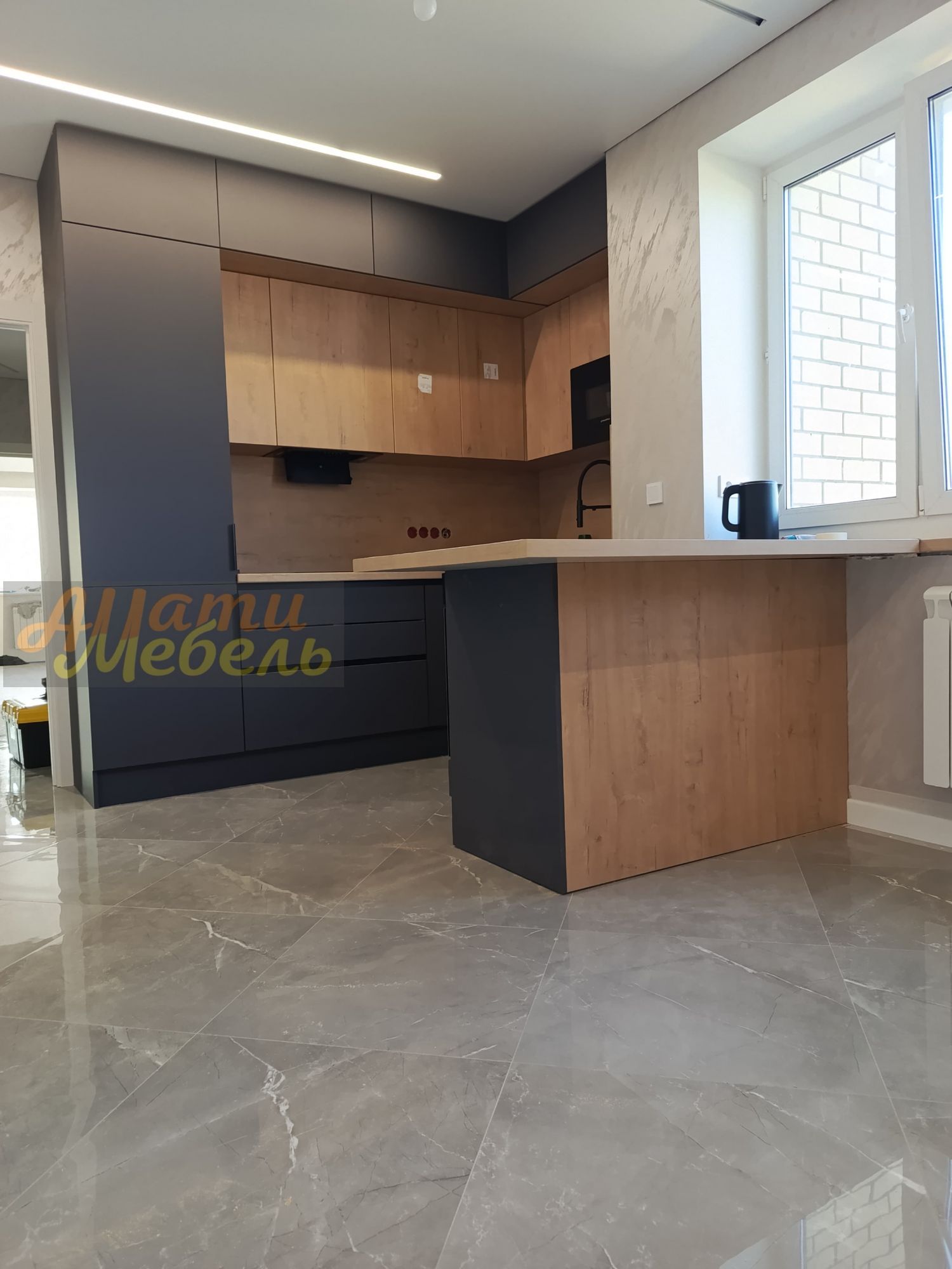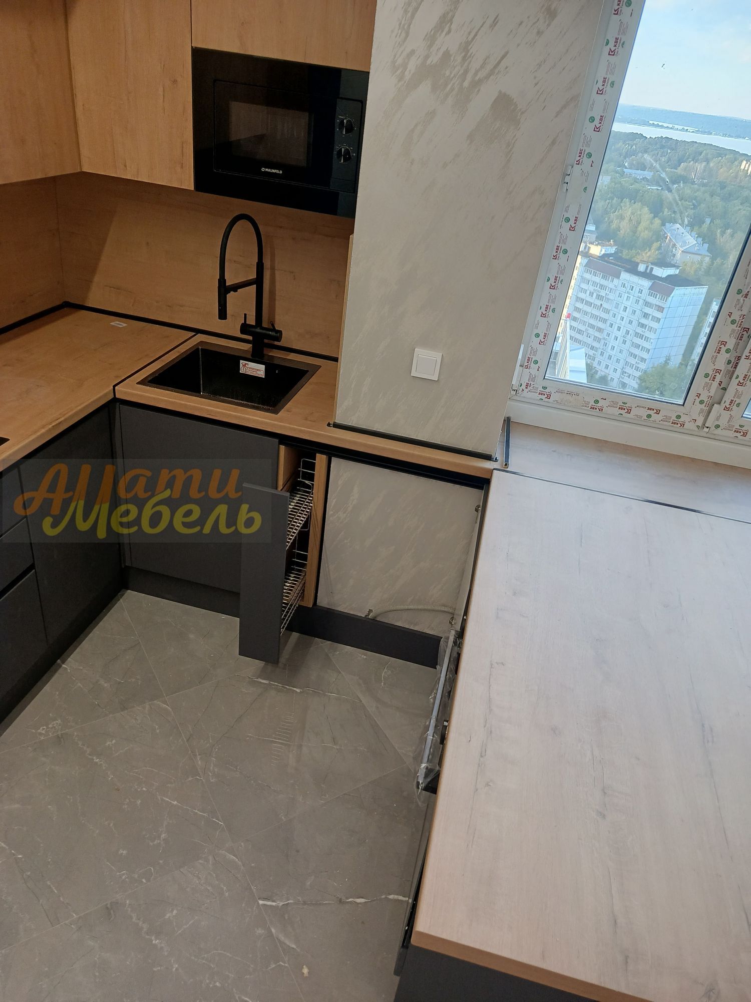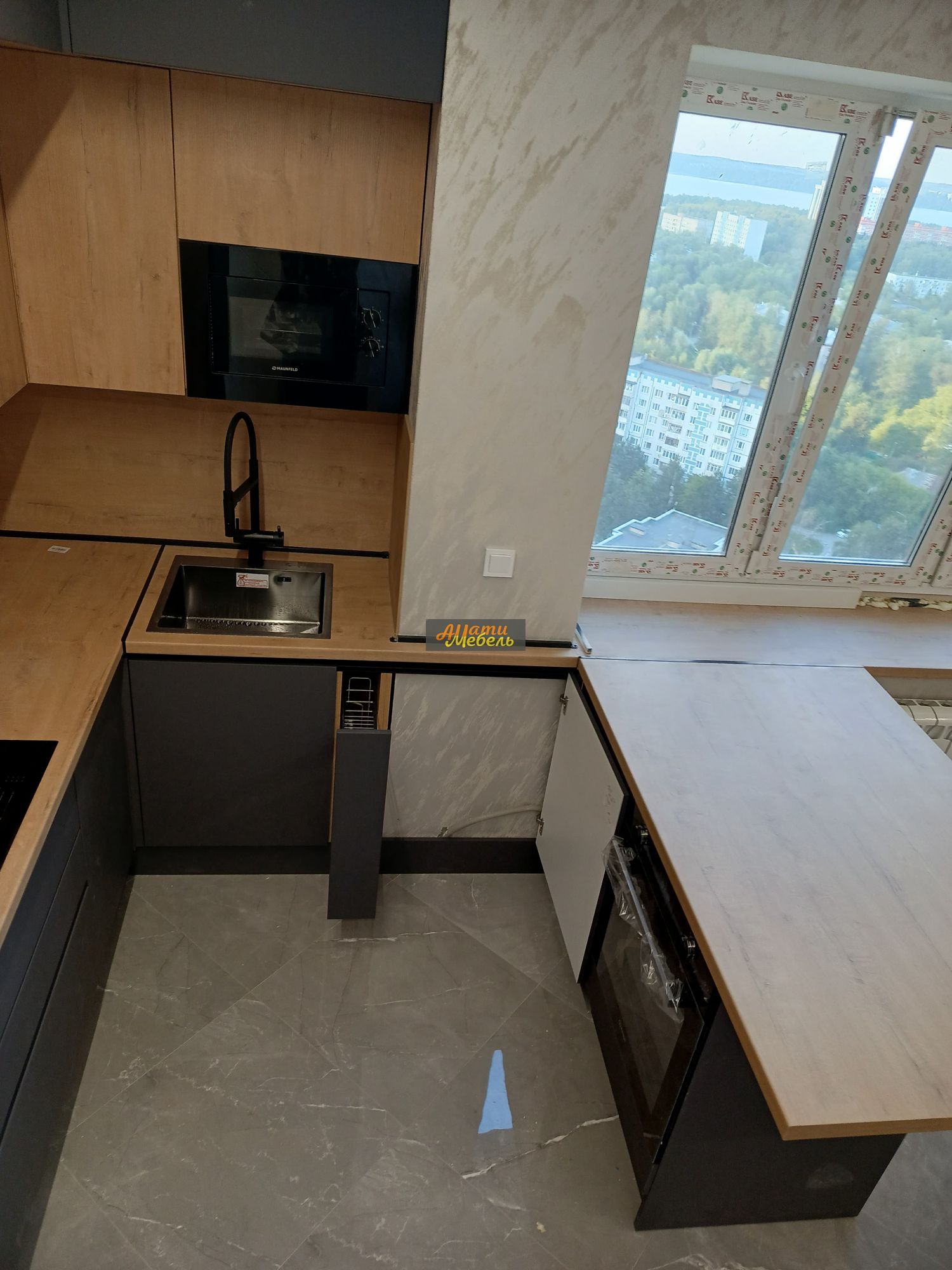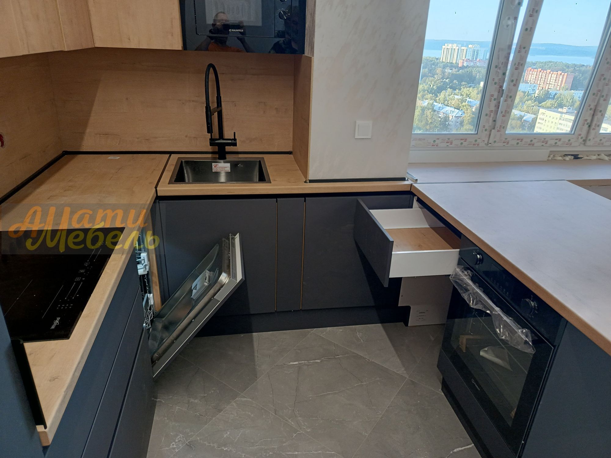 кухонный гарнитур с нишей для автоматической моющей станции(робота-пылесоса)
