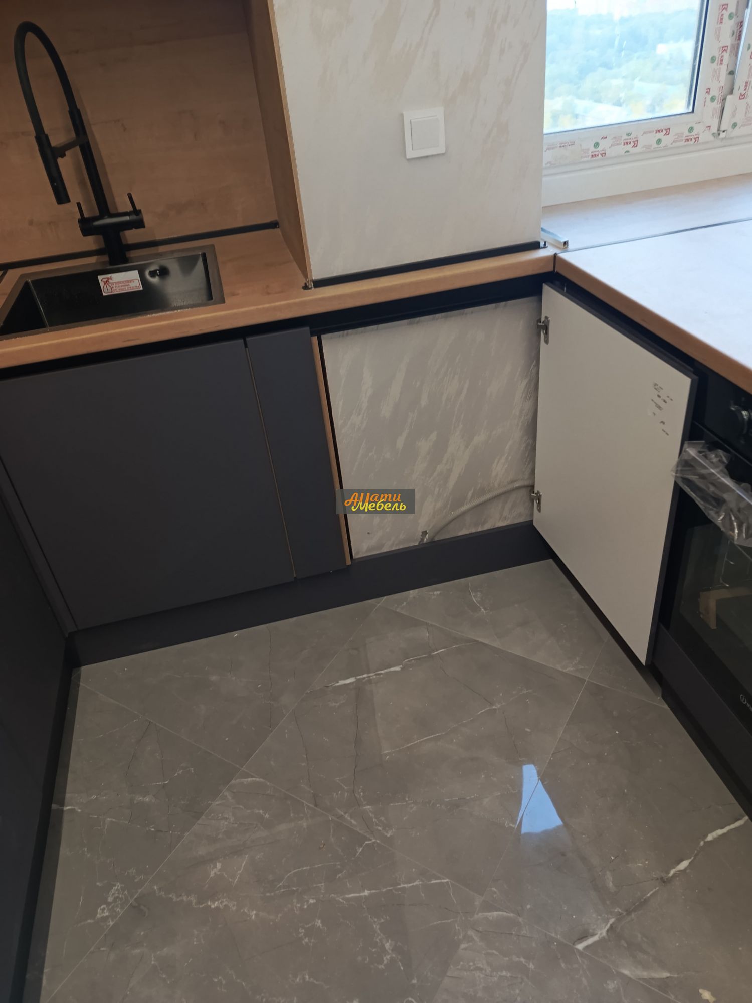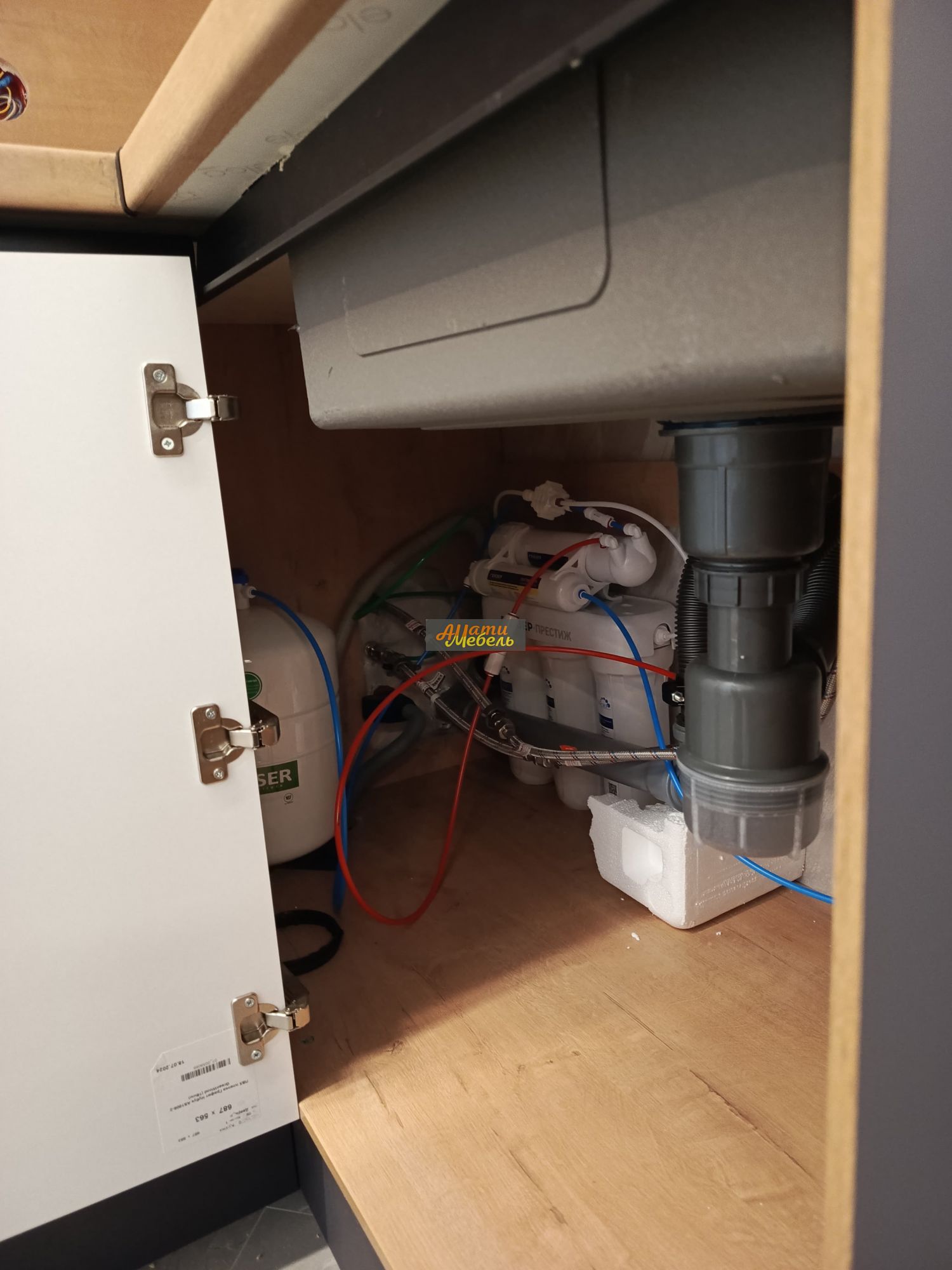 робот пылесос подключается к воде, трубы для подключения к воде проходят внутри кухни