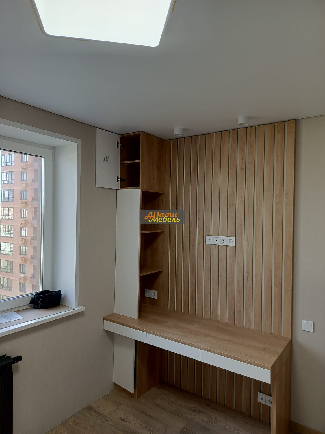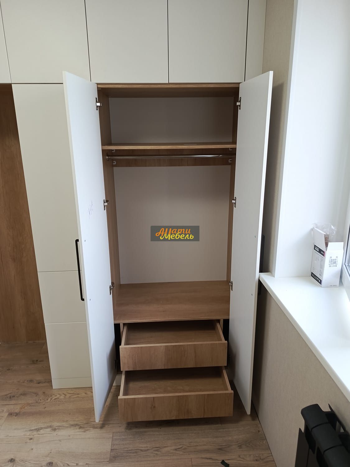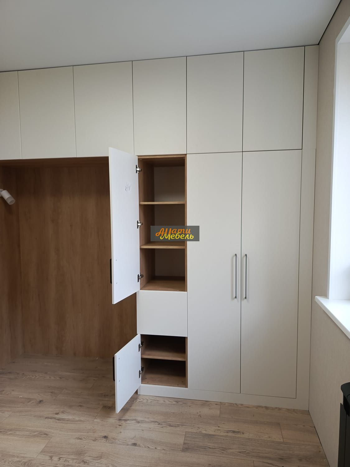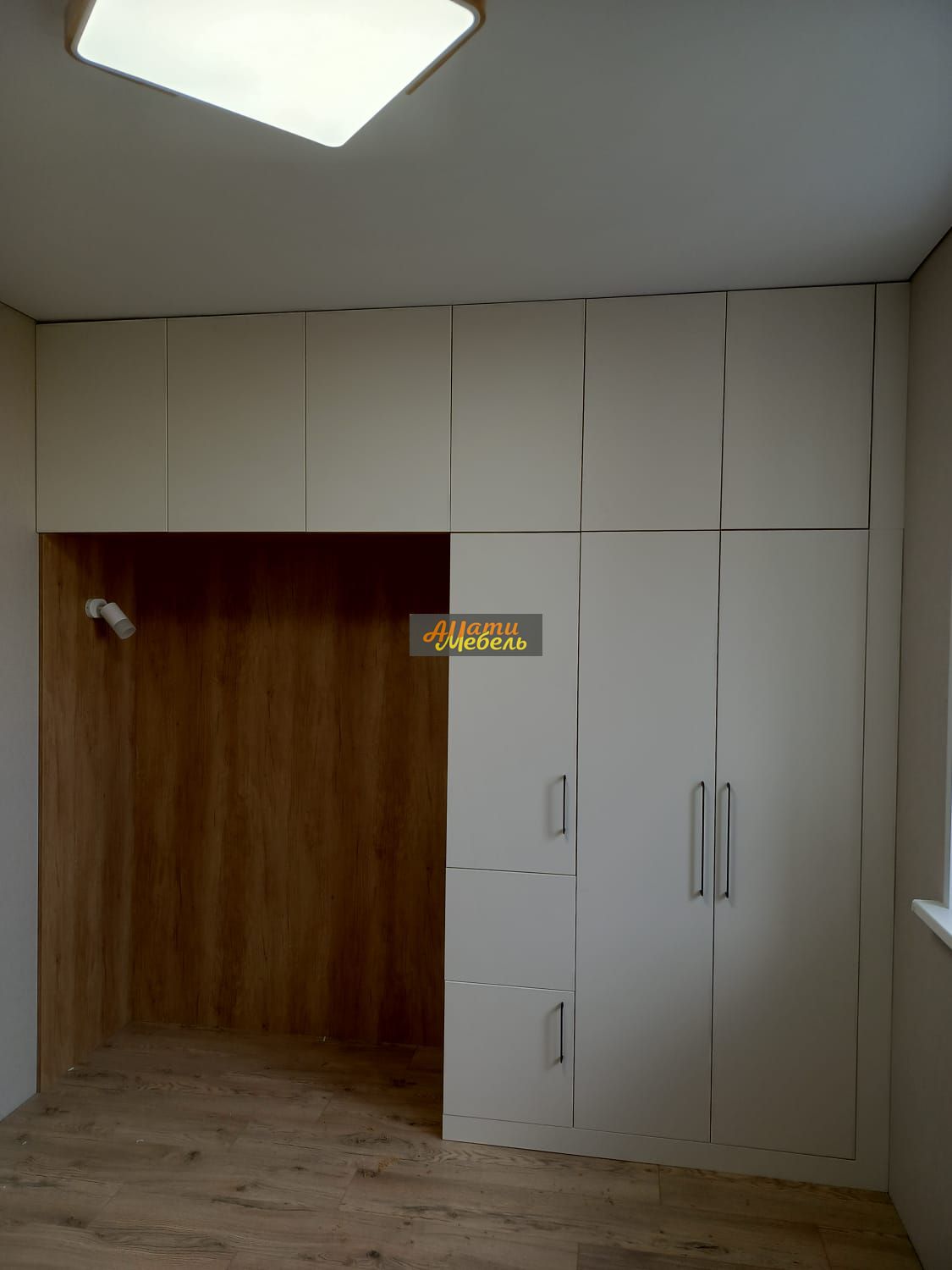 напротив шкаф с нишей для кровати