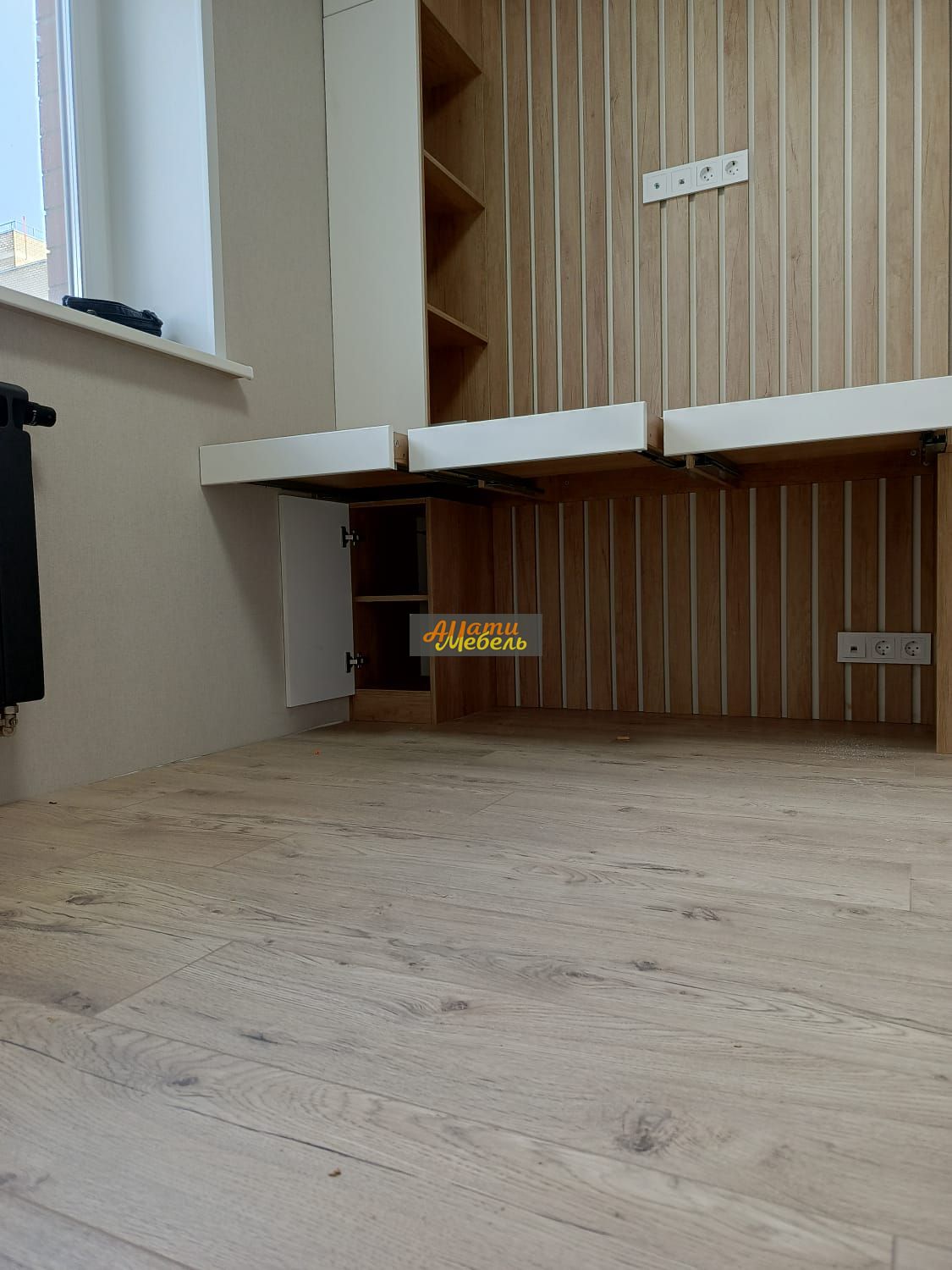 детская комната ,декор стены рейками