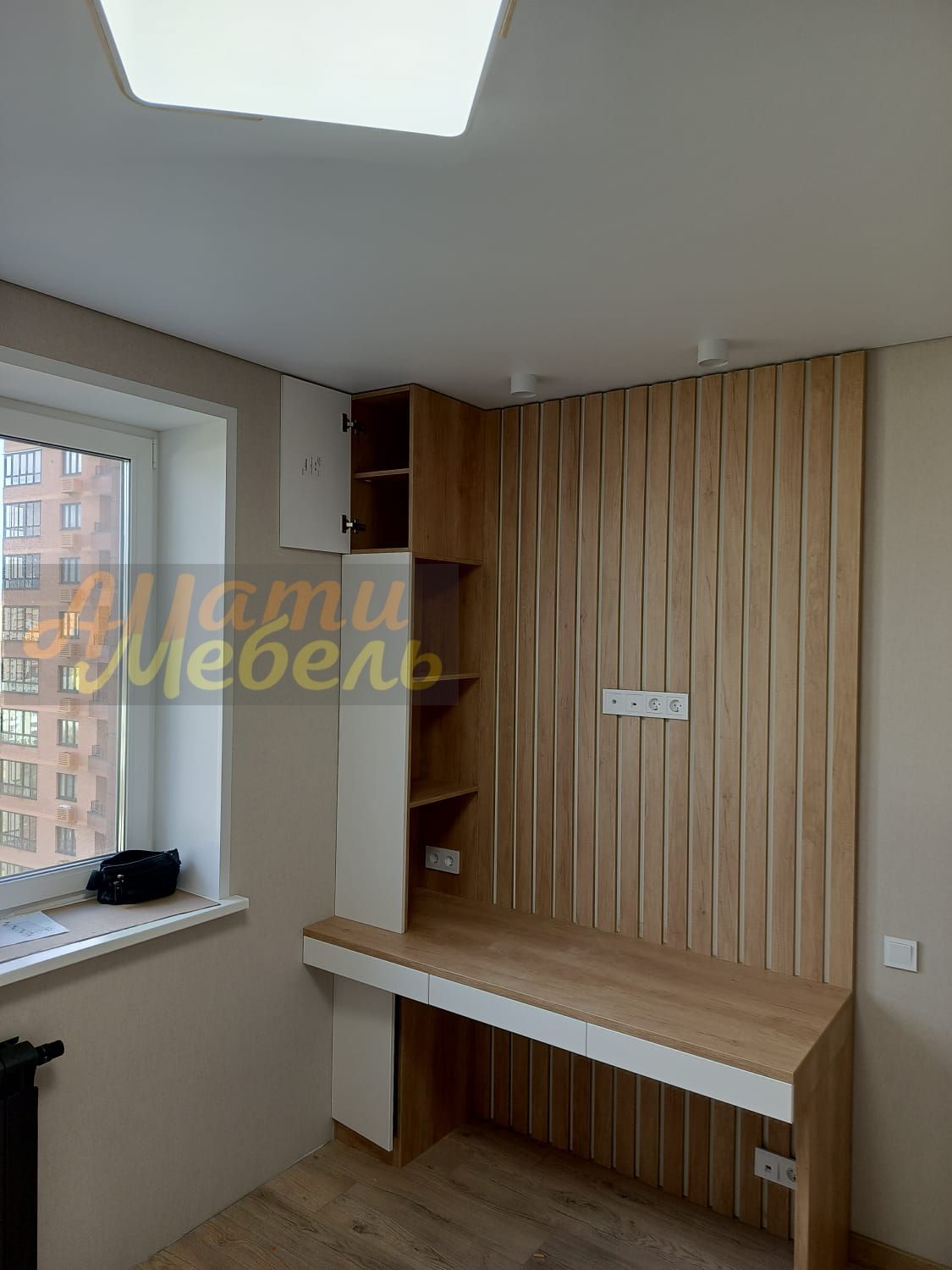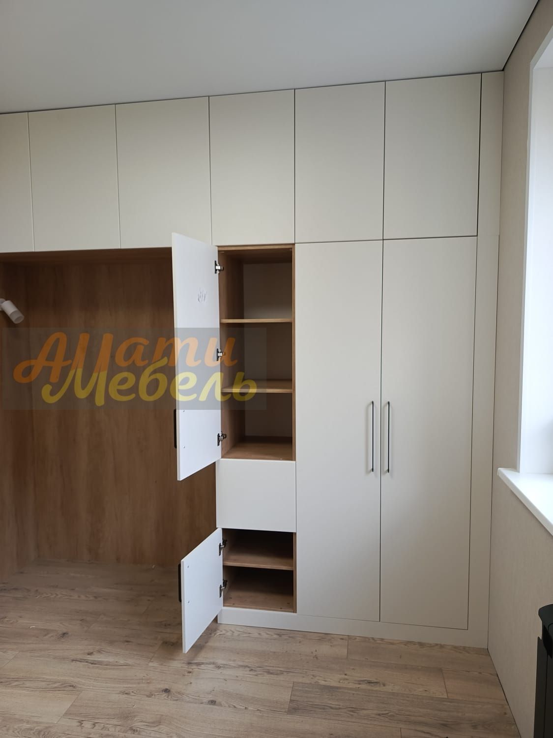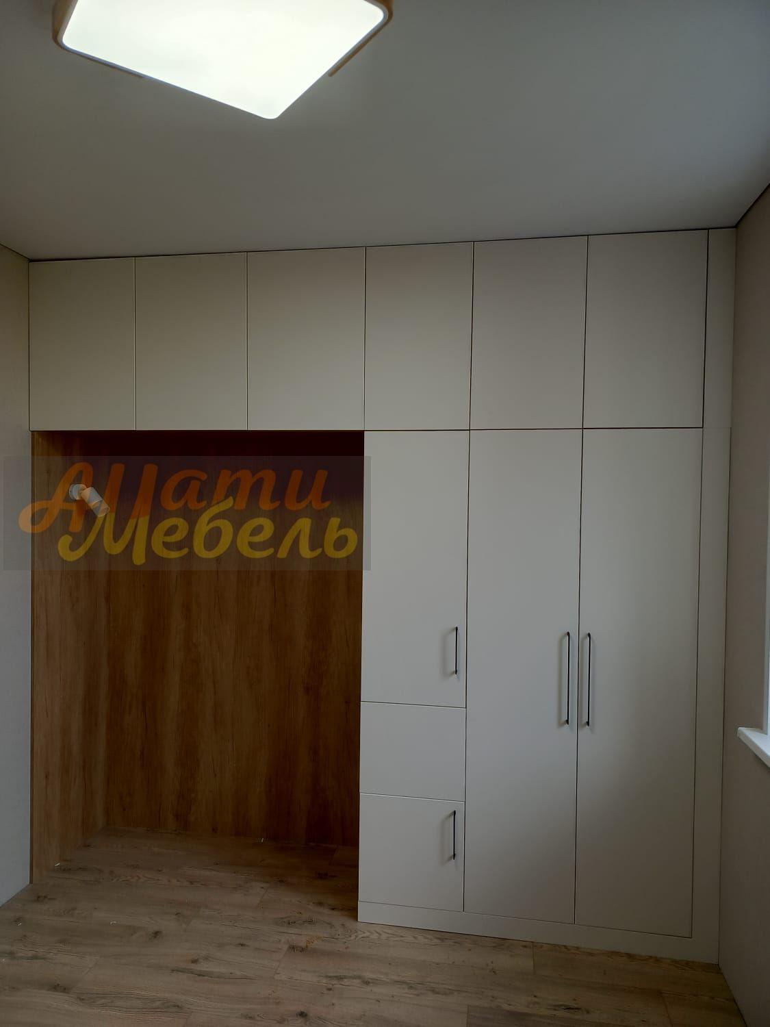 напротив шкаф с нишей для кровати
