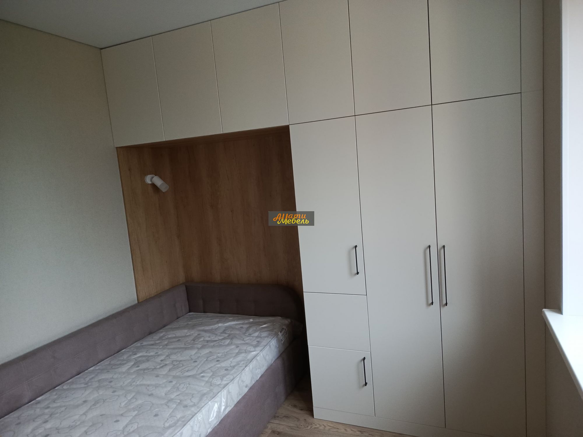 напротив шкаф с нишей для кровати